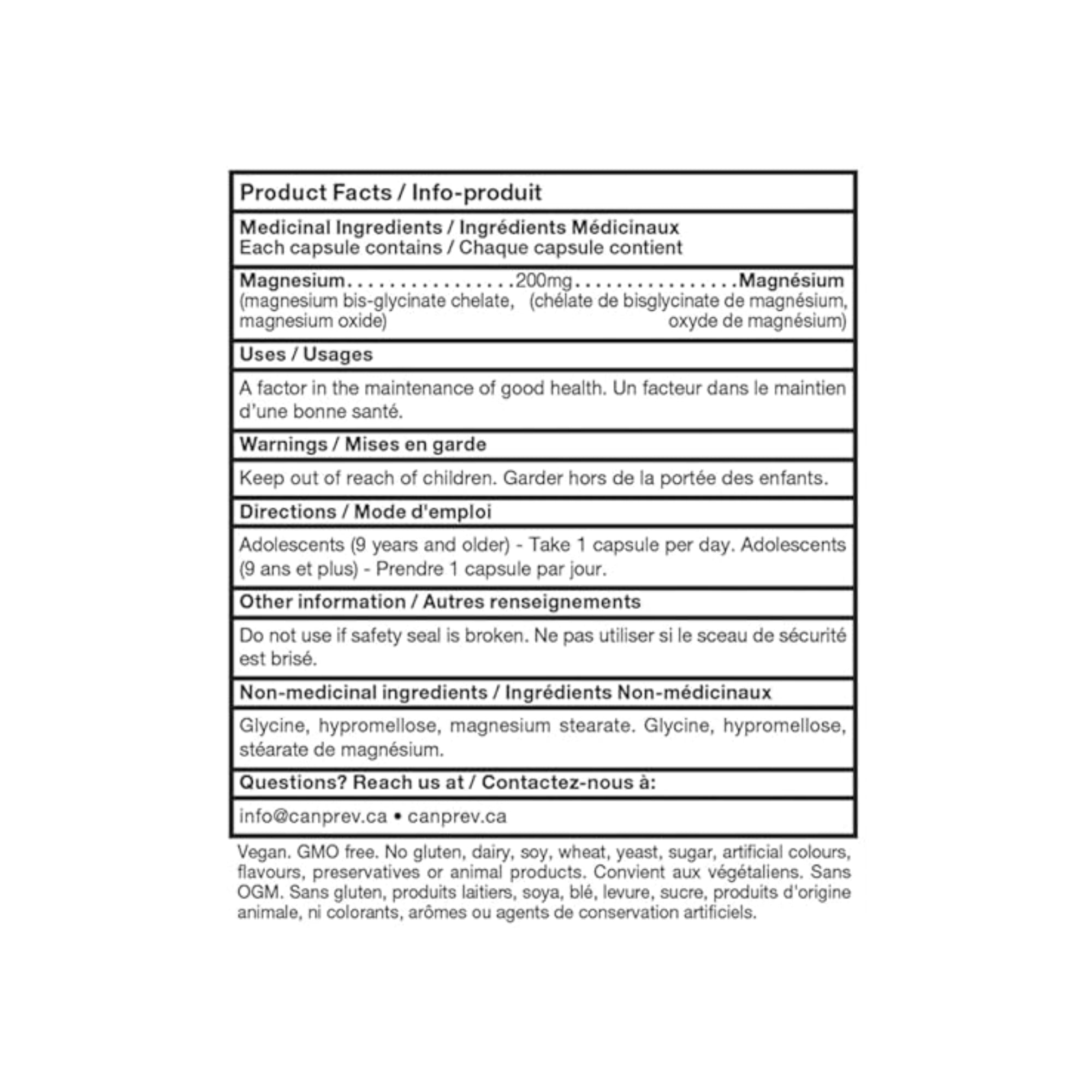 CanPrev’s Magnesium Bis·Glycinate 200 Gentle contains as much as 20% more elemental magnesium than other magnesium supplements. It works to restore magnesium to optimum levels and help fuel all the important functions it’s called on to perform. Magnesium Bis·Glycinate 200 Gentle offers a potent, therapeutic dose of 200mg of pure elemental magnesium in a form known for its superior absorption and gentleness on the bowels – all in easy to swallow vegetable capsule or powder with no fillers.